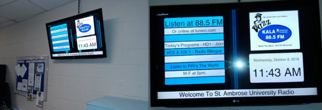 Thanks to KALA-FM Davenport, IA for sharing a picture of their new “Sprite Welcome” installed. More info about the Sprite Welcome at https://www.sprite-media.com/sprite-welcome