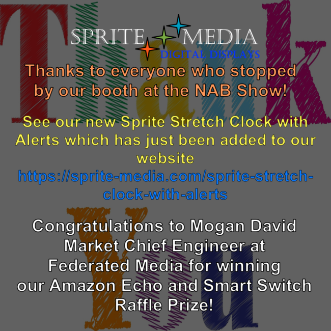 Keith will be introducing the new “Sprite Municipal Display”. He’ll be with our friends at Broadcasters General Store. Take a look at https://sprite-media.com/sprite-municipal-display/