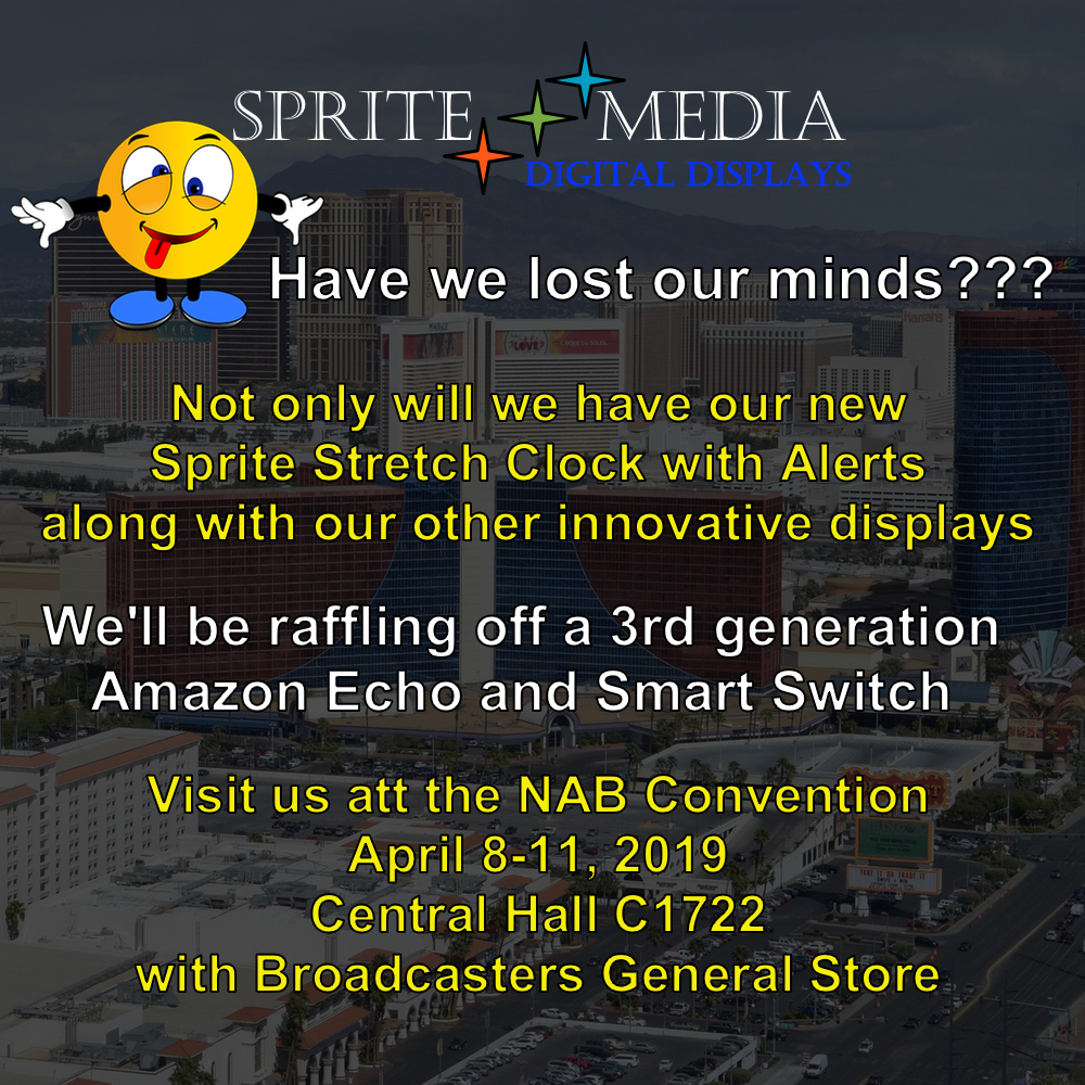 Apr32019News Come visit us at the Las Vegas Convention Center, April 8-11, 2019 Central Hall C1722 Category: NewsApril 3, 2019 Share This Article Share on FacebookShare on Facebook Share on XShare on X Pin itShare on Pinterest Share on LinkedInShare on LinkedIn Post navigationPreviousPrevious post:“This is Queensborough Magazine” – How can my business use digital signageNextNext post:Thanks for Visiting Us at the NAB Convention in Las Vegas!Related PostsSprite Media’s CTO Jeff Schick to Moderate NAB NY PresentationOctober 25, 2023Sprite Media’s Presenter featured in Radio Worlds Spring PreviewApril 3, 2023Sprite Media talks Society of Broadcast Engineers on “This Week in Radio Tech”March 29, 2023See Sprite Media at the Wisconsin Broadcasters ShowOctober 11, 2022Sprite Media’s Broadcast Clock on the Next Best Thing Media TourSeptember 22, 2022Sprite Media’s new Dashboard Express featured in the May edition of Radio World MagazineJune 2, 2022
